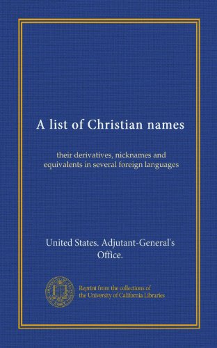 See all customer reviews...A list of Christian names: their derivatives, nicknames and equivalents in several foreign languages, by United States. Adjutant-General's PDF